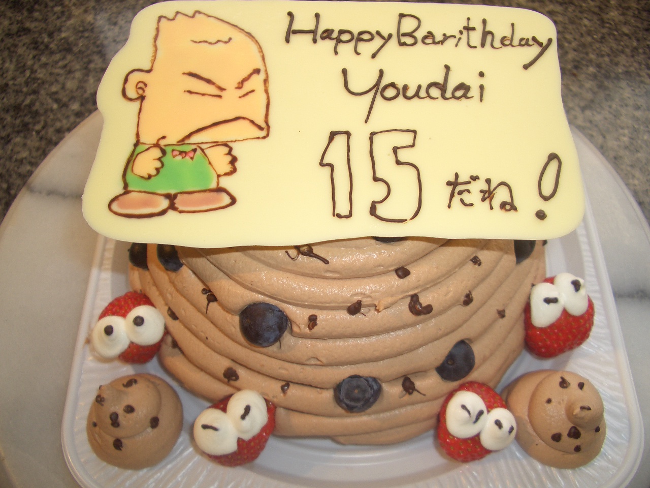 お客様の要望でブルーベリー、イチゴ あふれるぐらい乗せました。頑張ります!