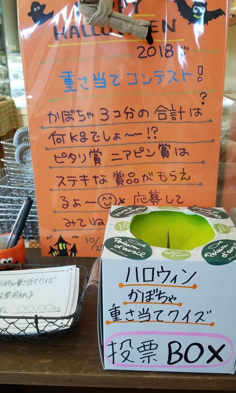現在かぼちゃの重さあてコンテスト開催中