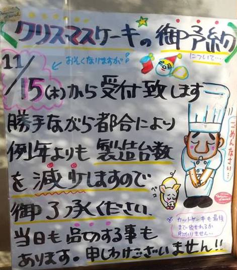 今年は事情により、お受けできるケーキ個数に限りがございます。