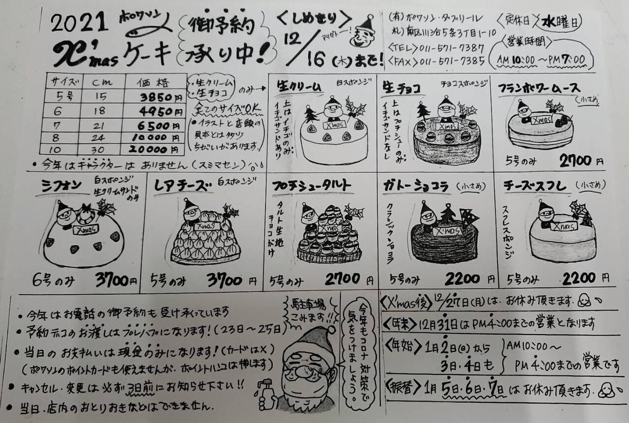 クリスマスケーキ、ご予約受付中!(一部内容変更)
