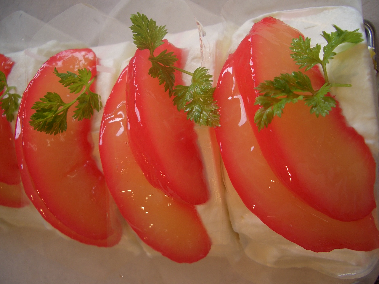 フレッシュピーチ(生の桃!)にやわらかなピンクの色をつけ